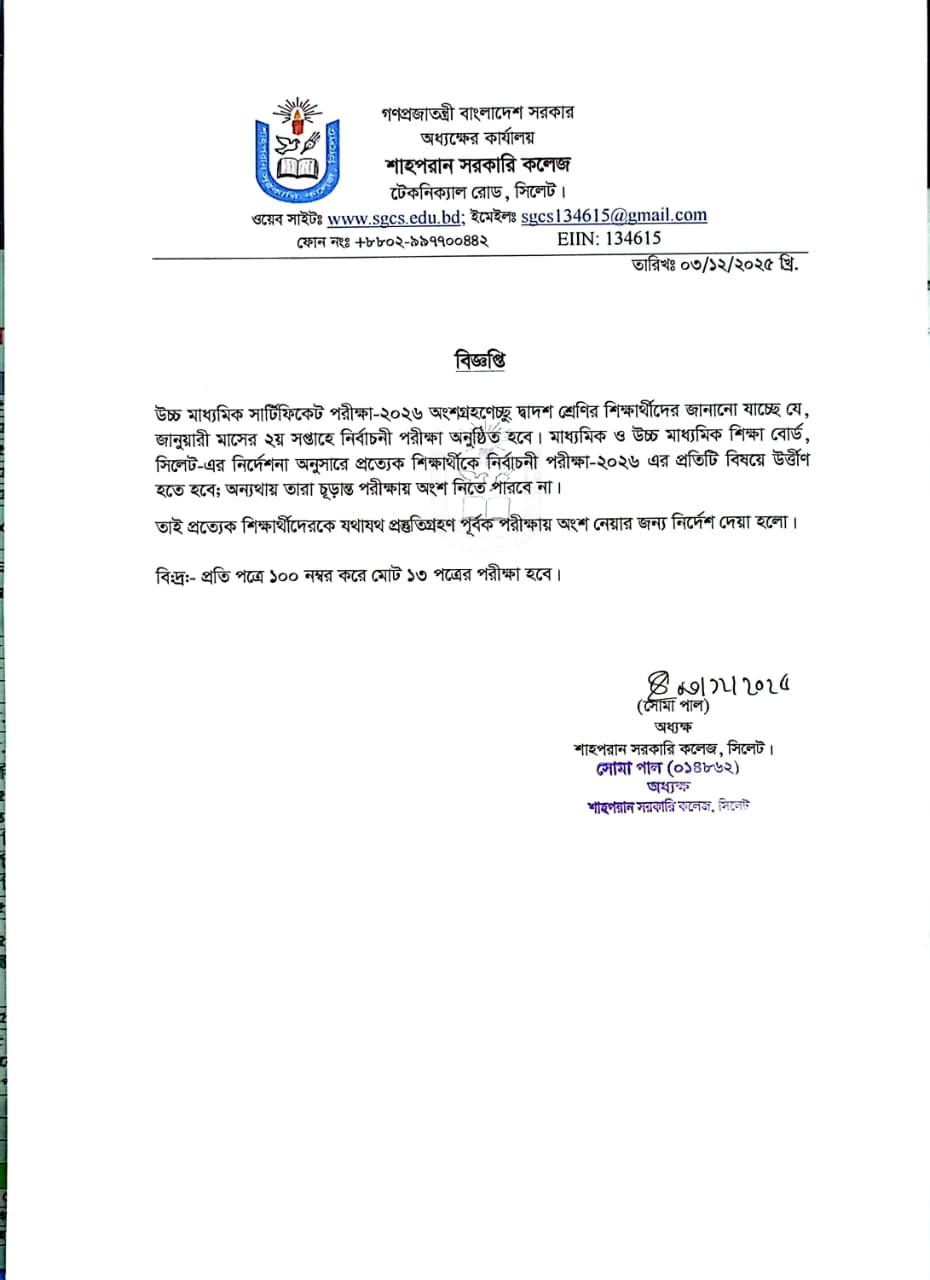 এইচএসসি পরীক্ষা ২০২৫ অনিয়মিত পরীক্ষার্থীদের ফরম পূরণ বিষয়ক নোটিশ |