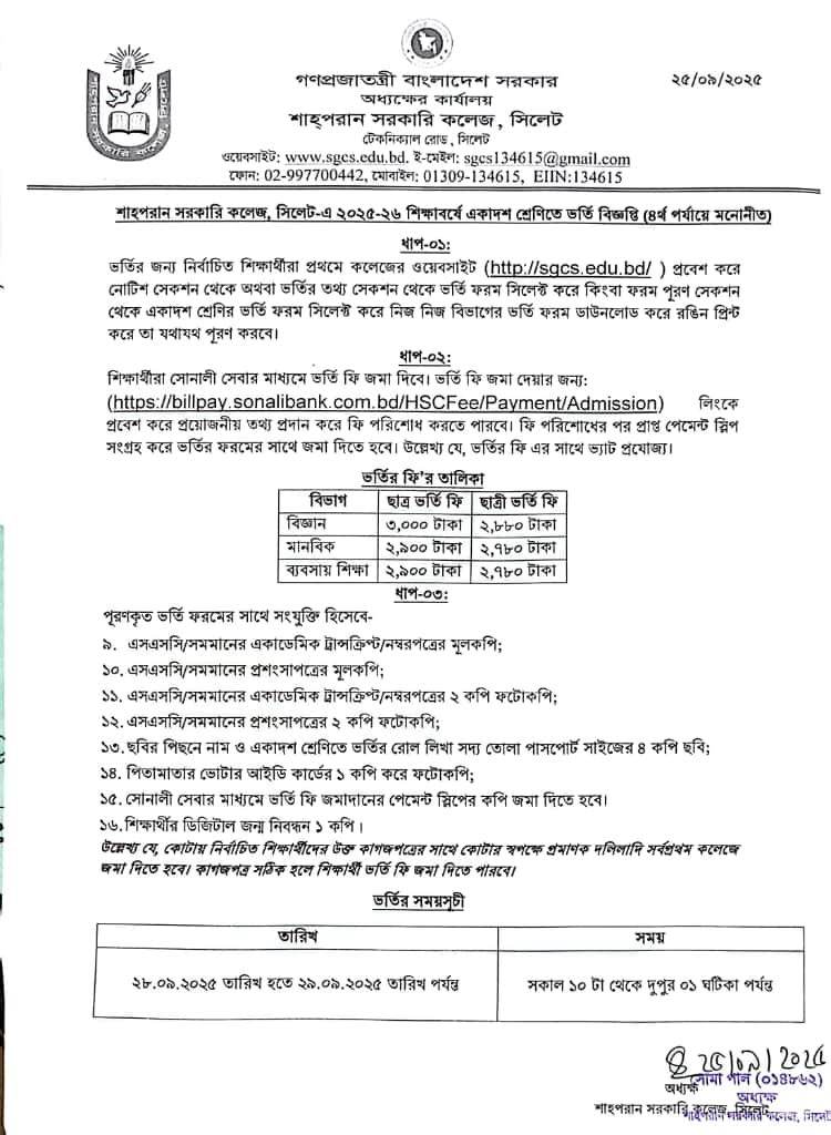 একাদশ শ্রেণির ভর্তি বিজ্ঞপ্তি-২০২৫, সেশন: ২০২৫-২০২৬>