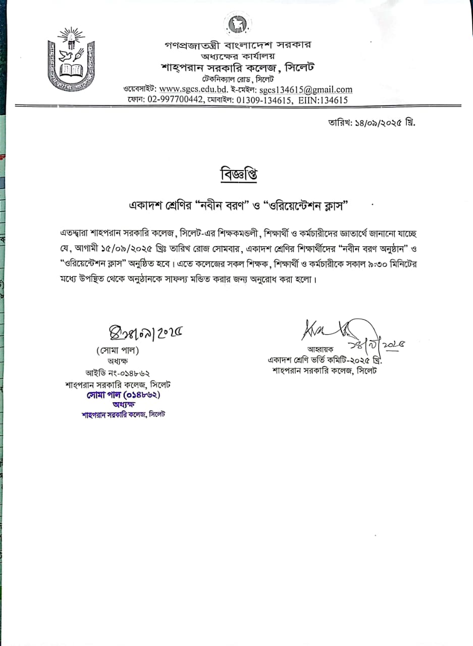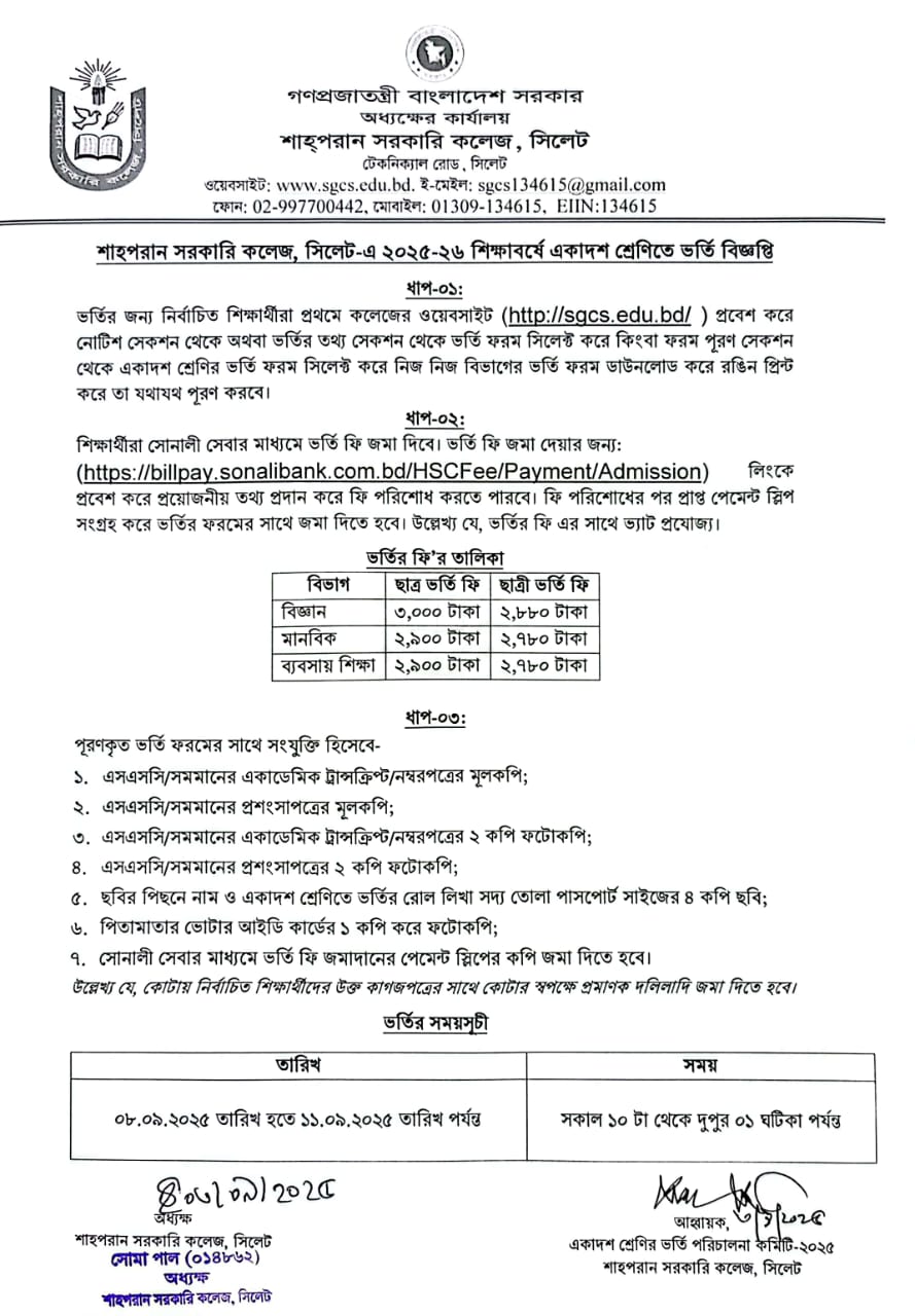 একাদশ শ্রেণির ভর্তি বিজ্ঞপ্তি-২০২৫, সেশন: ২০২৫-২০২৬ |