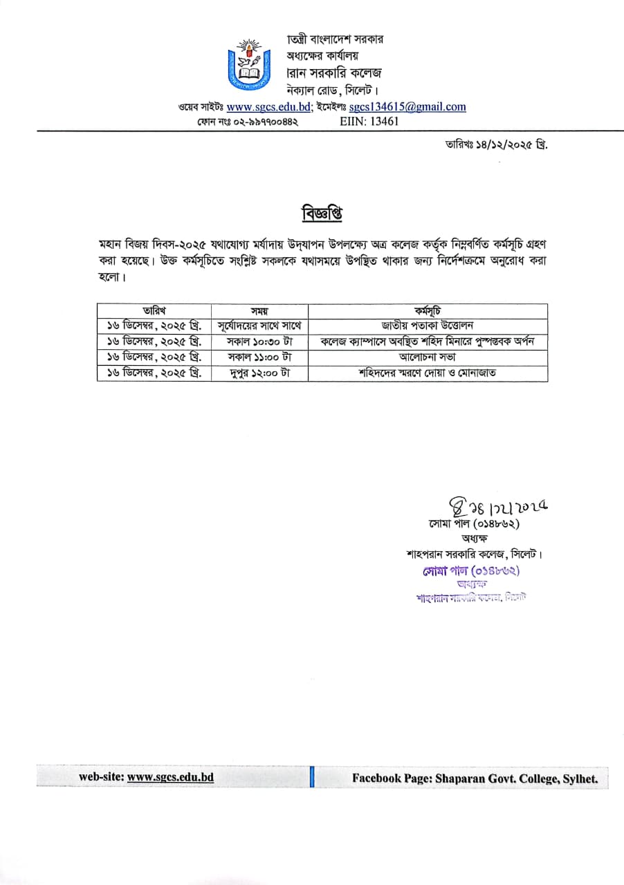 25 মার্চ গণহত্যা দিবস 2025 পালন এবং 26 মার্চ মহান স্বাধীনতা ও জাতীয় দিবস 2025 উদযাপনের নোটিশ |