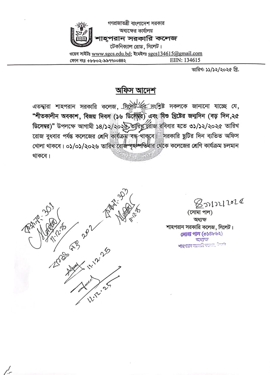 যিশু খ্রিস্টের জন্মদিন (বড়দিন) উপলক্ষ্যে বন্ধের নোটিশ |