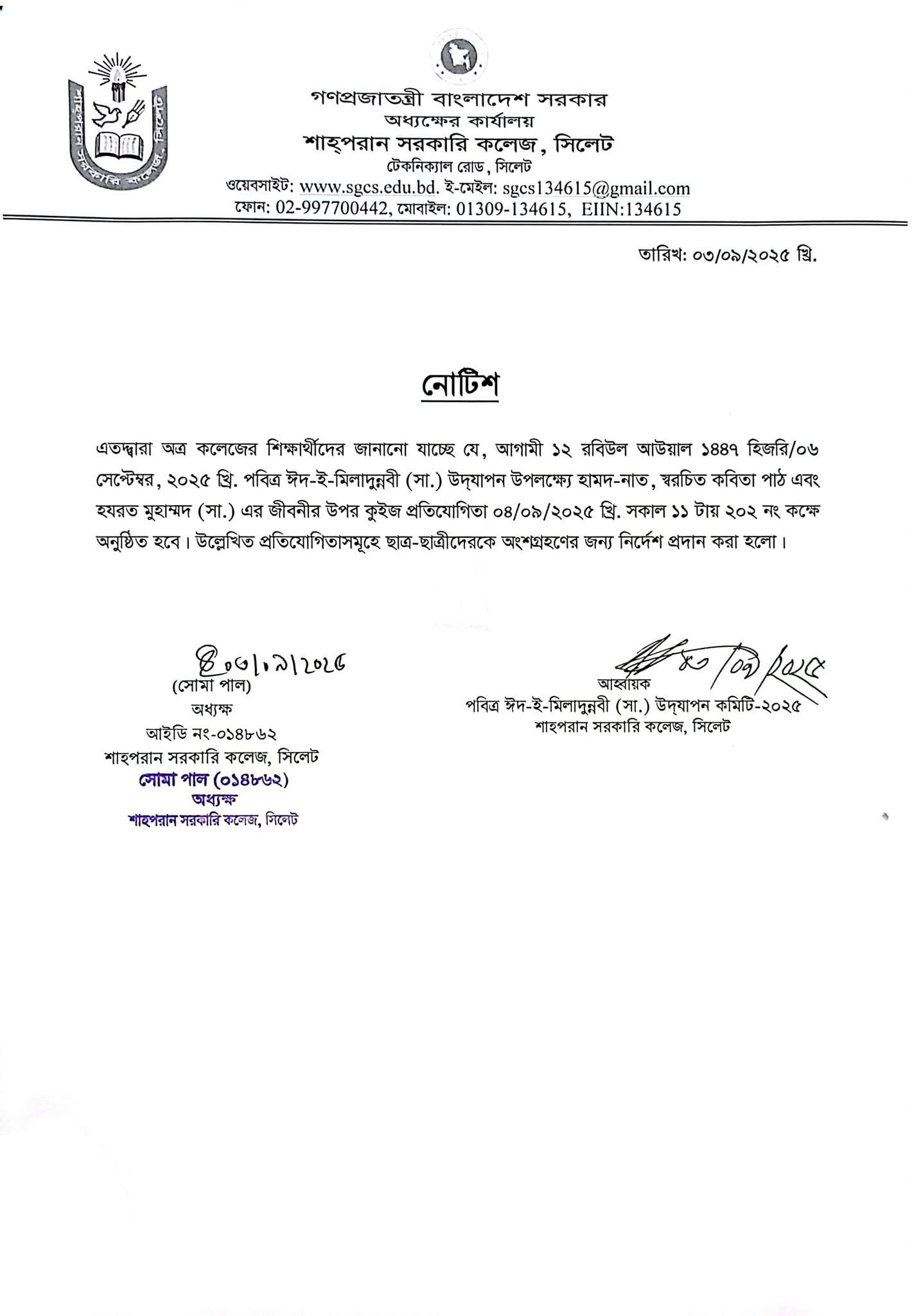 বার্ষিক সাহিত্য ও সাংস্কৃতিক প্রতিযোগিতা ২০২৪ এর জরুরি নোটিশ |